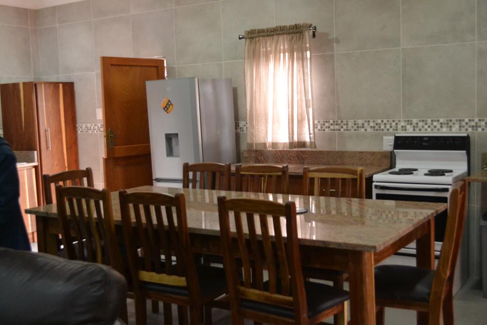 4 bedroom/8 Guest House: Main Room: 1 x double bed with en-suite, bathroom with a bath, shower, basin and toilet & Dressing Room. 2nd Bedroom with a double bed. 3rd & 4th Rooms 2 x single beds in each room. Bathroom with bath and shower. Separate toilet. Kitchen fully equipped with basic crockery and cutlery (for 8 people), cooking utensils, stove, oven, fridge and microwave. Lounge with a TV (16 selected DSTV Channels) Air-conditioner and Braai area. Max 8 people.