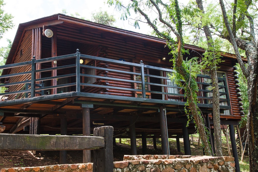 2 bedroom/4 sleeper log cabin: Main Room: 1 x double bed, 2nd Room 2 x single beds. Bathroom with a bath, shower and basin. Separate toilet. Kitchen fully equipped with basic crockery and cutlery (for 4 people), cooking utensils, stove, fridge and microwave. Lounge with a TV (16 selected DSTV Channels), Air-Conditioner and Braai area. Max 4 people.